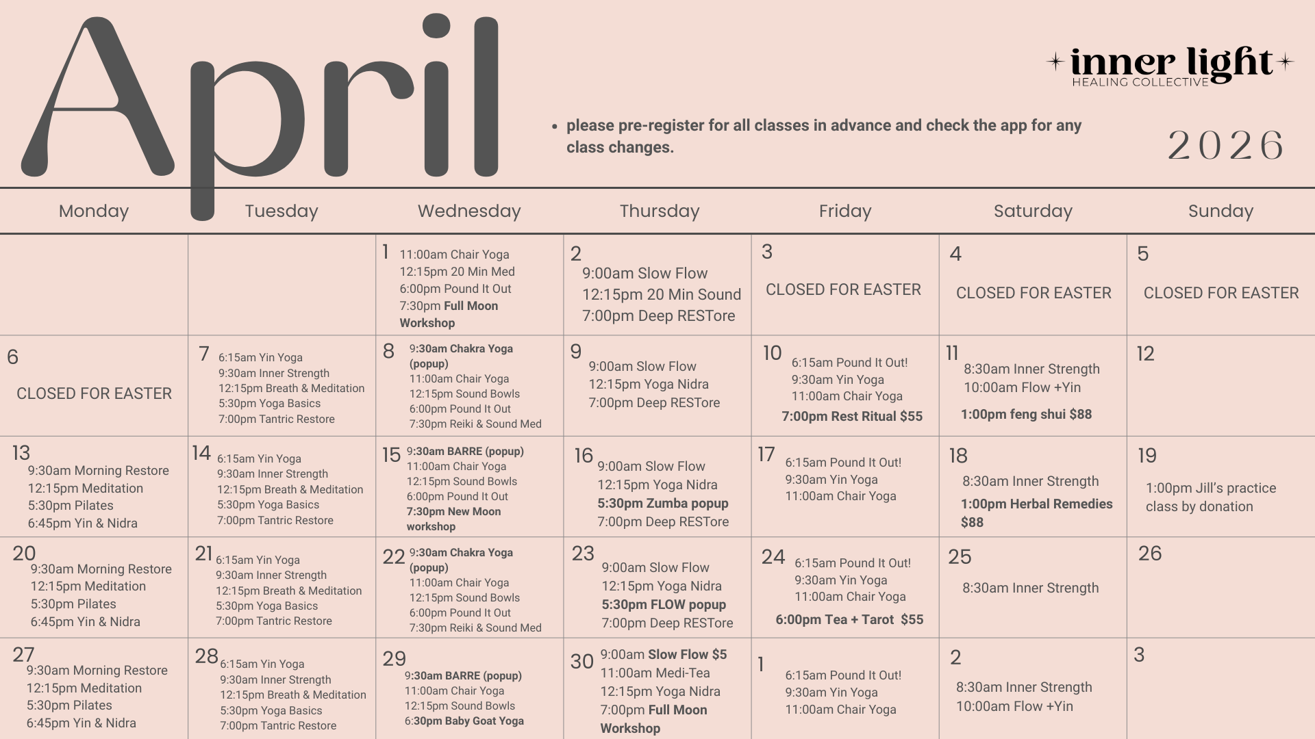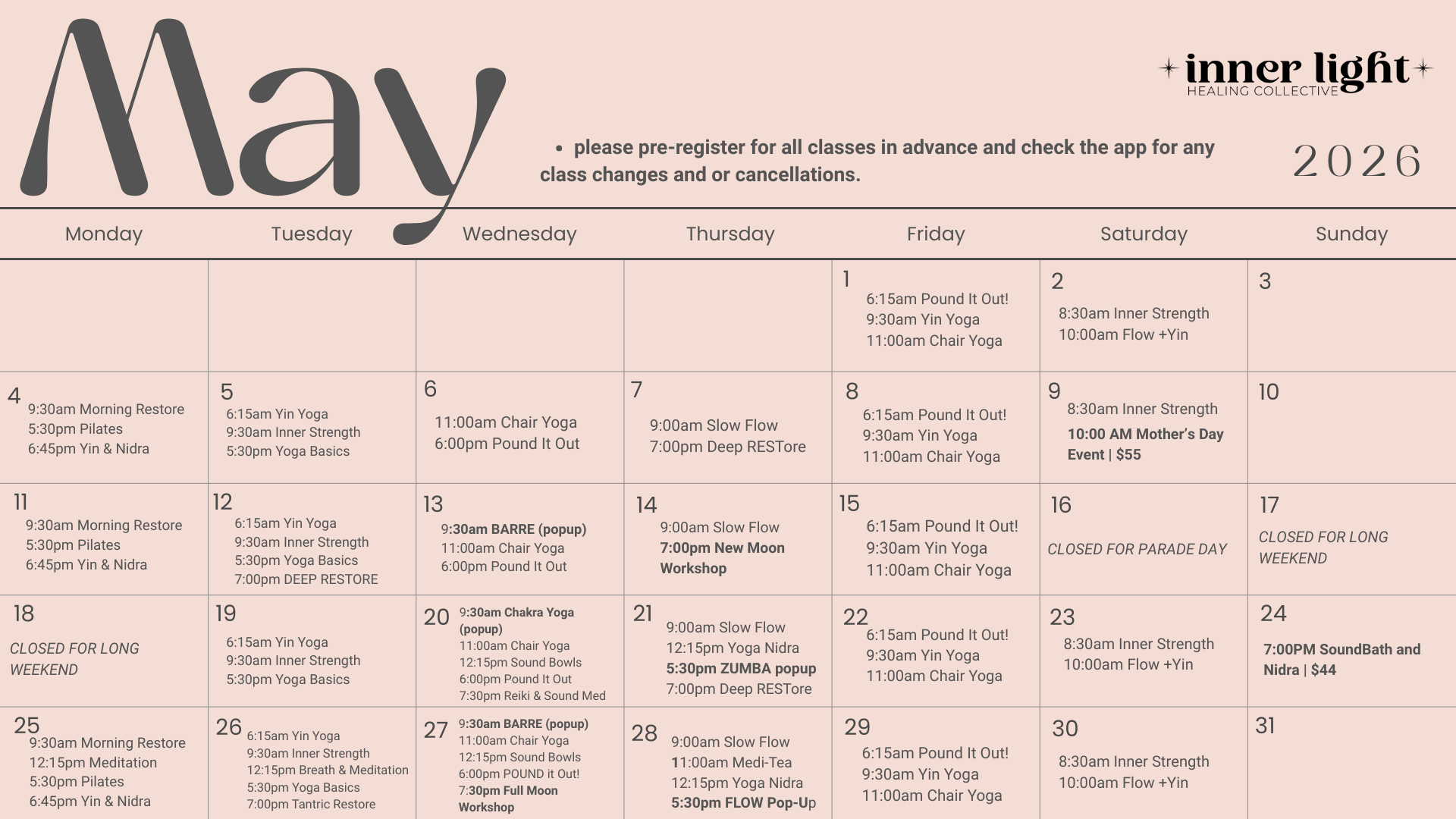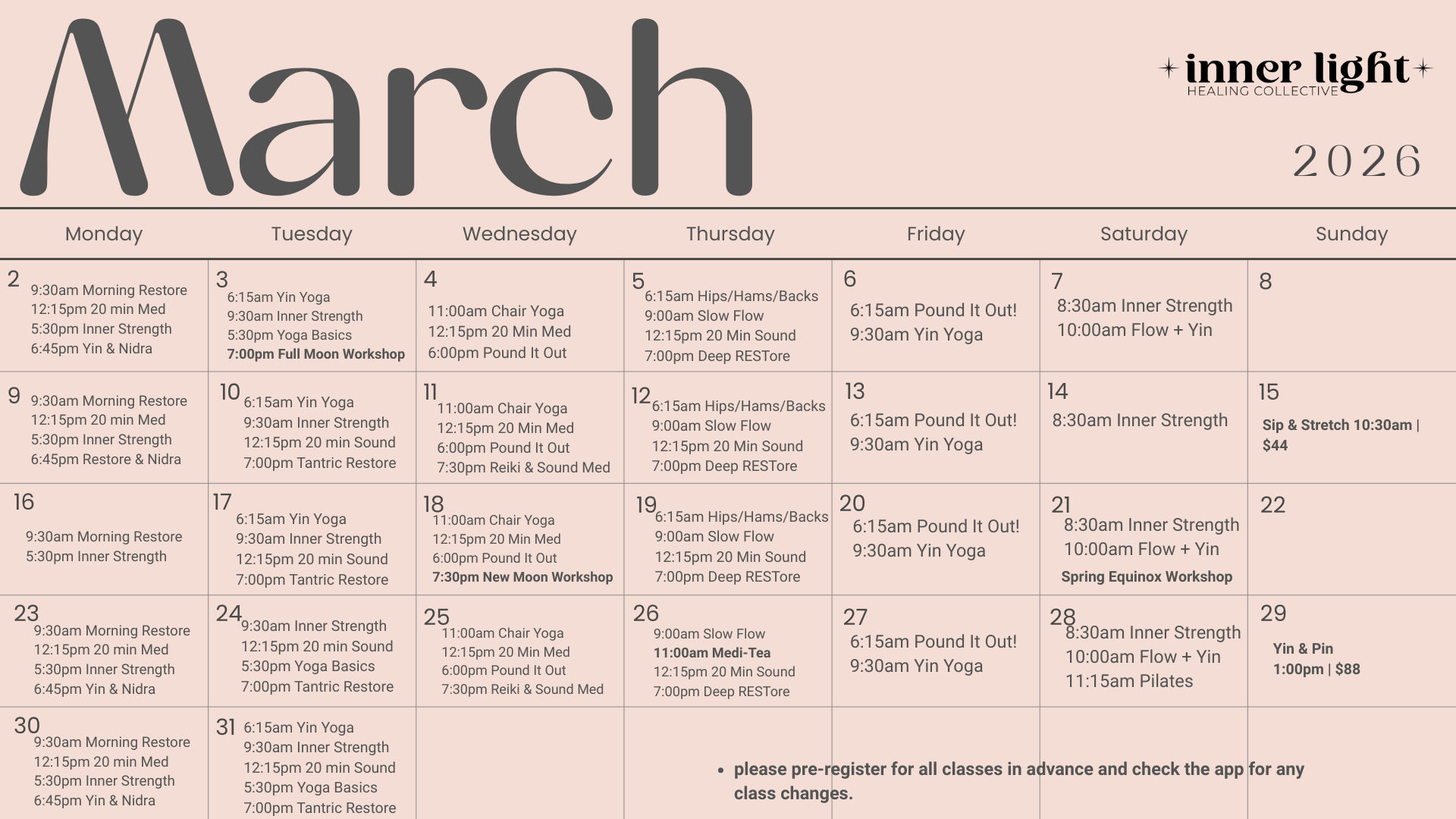 ***** Schedule is subject to change - please pre-register for all classes on our app