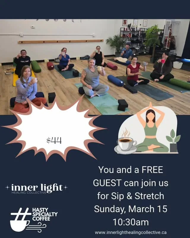 Join us for Sip & Stretch, where you'll enjoy a carefully crafted cup of Hasty Specialty Coffee while engaging in restorative stretching, deep relaxation, and guided meditation.