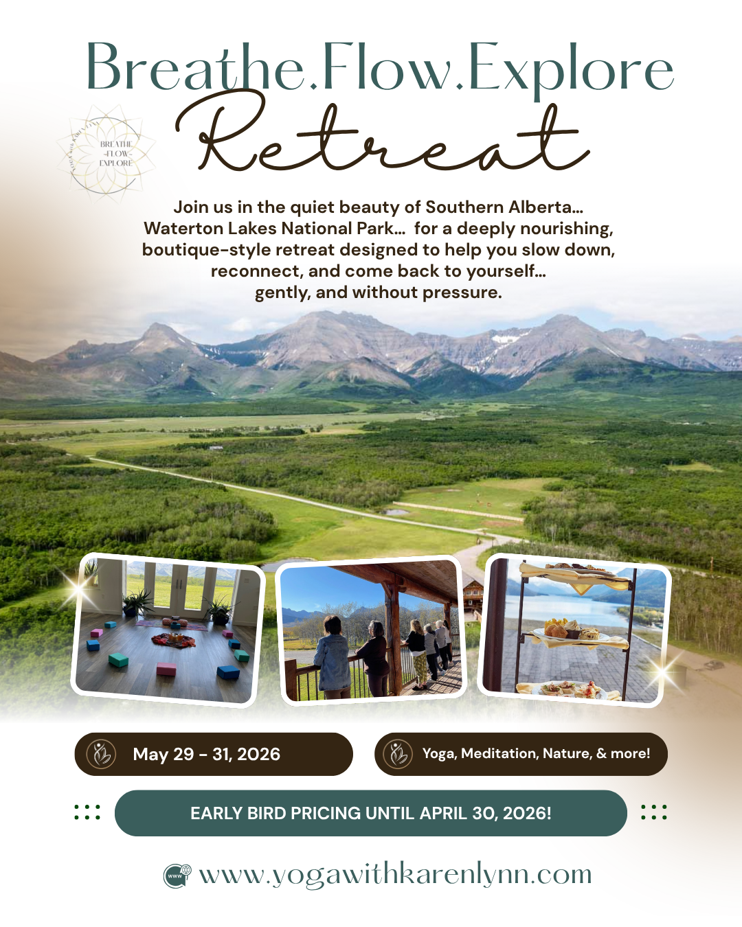 Waterton Lakes National Park… for a deeply nourishing, boutique-style retreat designed to help you slow down, reconnect, and come back to yourself…